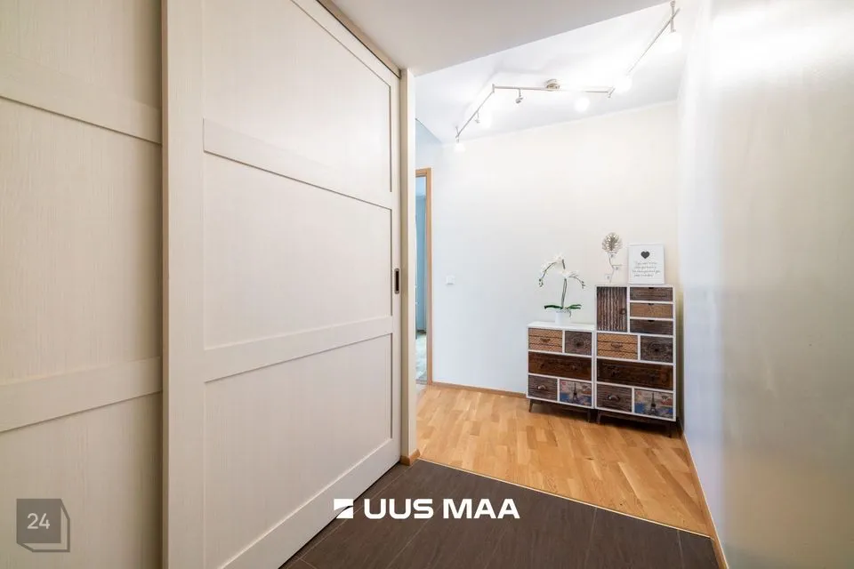 Korterisse sisse astudes ootab ees suur esik. Sealt edasi liikudes jääb paremale magamistuba, mille vastas on ruumikas WC'ga vannituba, mis on äsja värskenduskuuri läbinud. Selle kodu südameks on avatud köögiga ühendatud elutuba, mille väga suured maast laeni aknad ja rõduuksed lisavad korterile rohkelt avarust ja valgust.