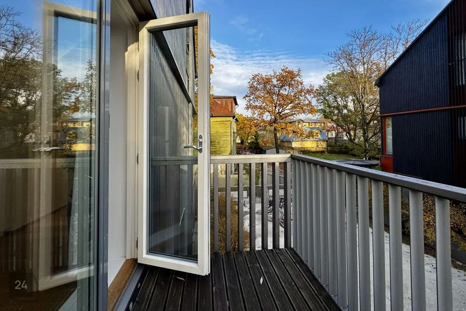 Esikust paremale asub magamistuba, vasakul elutuba, köök, rõdu.