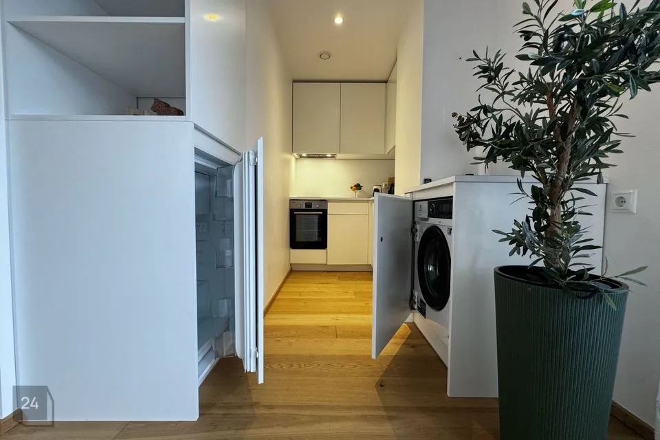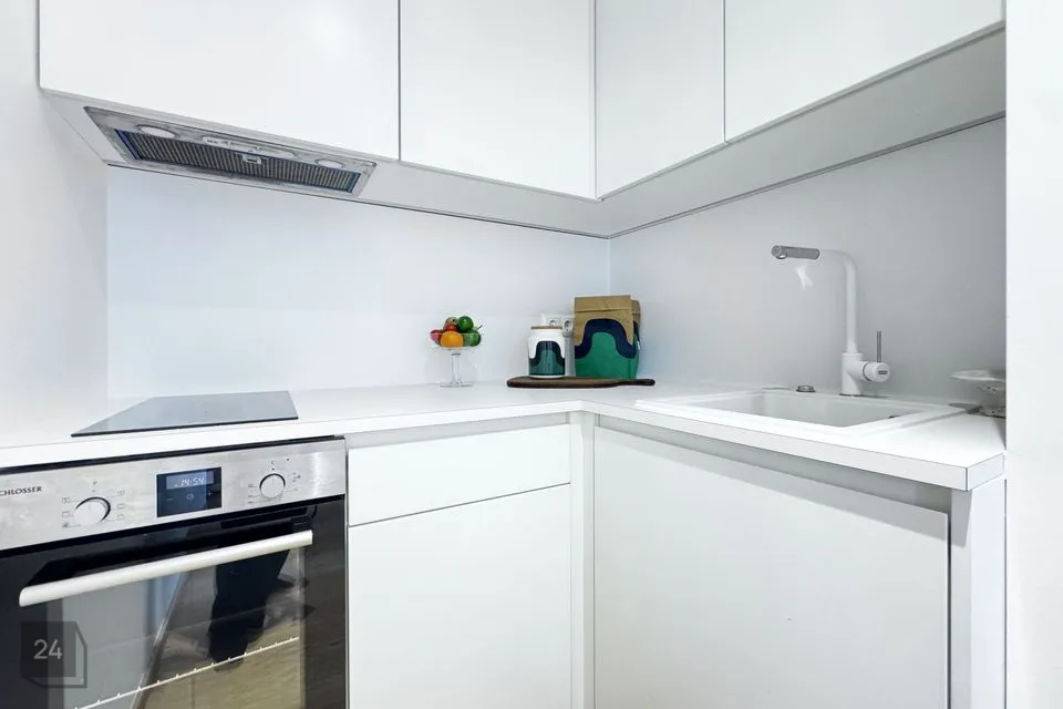 Kodutehnika: köögis indukstioonpliit, ahi, kubu, väike külmkapp, pesumasin.