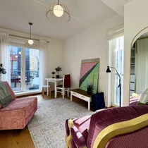 Maja vastas väike pagarikohvik Läheduses toidupood Selver ABC ja mitmed Pelgulinna ja Kalamaja restoranid ja kohvikud, nt Ristikheina hubane kohvik (vt viimased pildid). Kaugel pole ka vanalinn, Telliskivi keskus ja Balti Jaama turg.