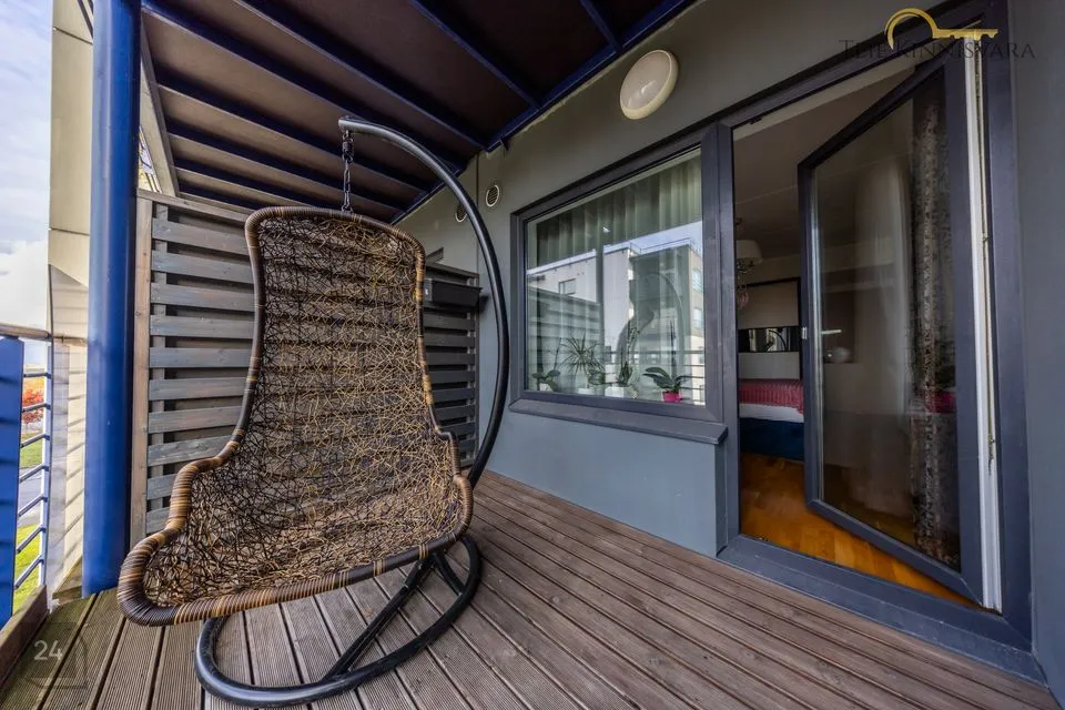 Korteri koosseisu kuulub avar esik sisseehitatud garderoobiga, WC, elektripõrandaküttega vannituba, avar elutuba avatud köögiga, suur magamistuba pääsuga suurele merevaatega rõdule, kuhu paistab õhtupäike ning lisaks väiksem laste magamistuba.