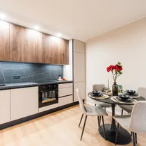 Korteri põrandaid katab korralik laminaat. Korteri köögis asub uus köögimööbel ja sisse ehitatud köögitehnika.