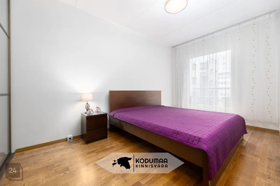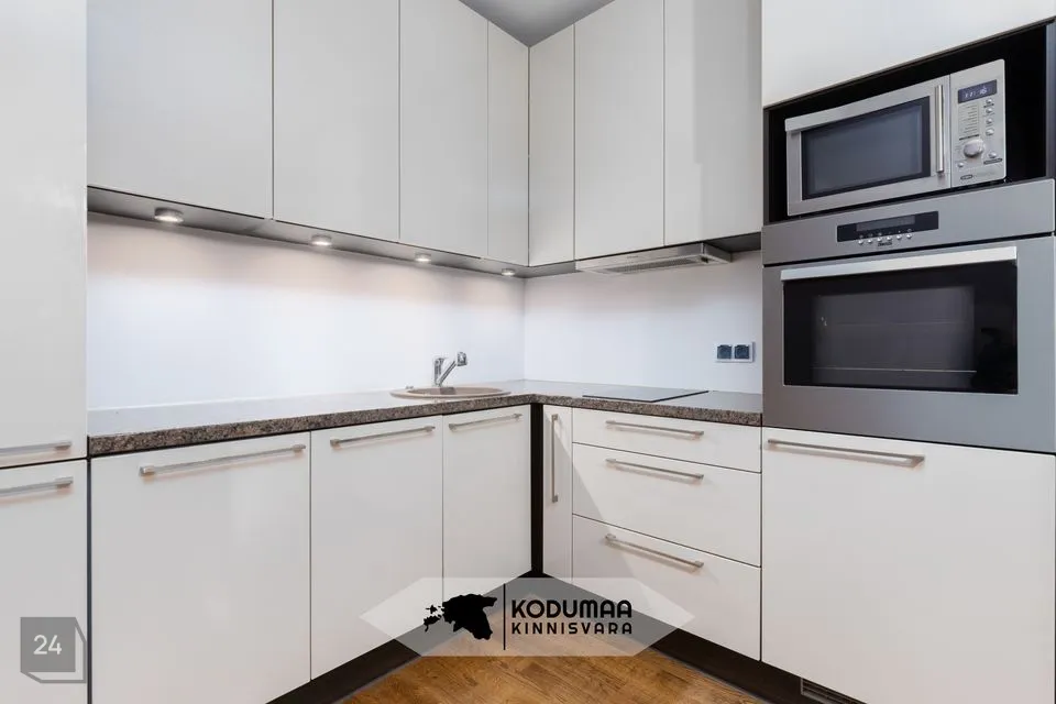 A spacious and bright 2-room apartment in the Foorumi Residence, located in the heart of Tallinn, is now for sale. The total area of the apartment is 66.2 m², of which 52.7 m² is living space and a large 13.5 m² balcony with a view of a peaceful inner courtyard. The layout is well-thought-out – with an open kitchen-living room, separate bedroom, hallway, and bathroom. The apartment comes with kitchen furniture including integrated appliances, a built-in wardrobe, and forced ventilation ensuring fresh air even during summer. Higher ceilings (approx. 2.7 m) create a sense of spaciousness and openness.