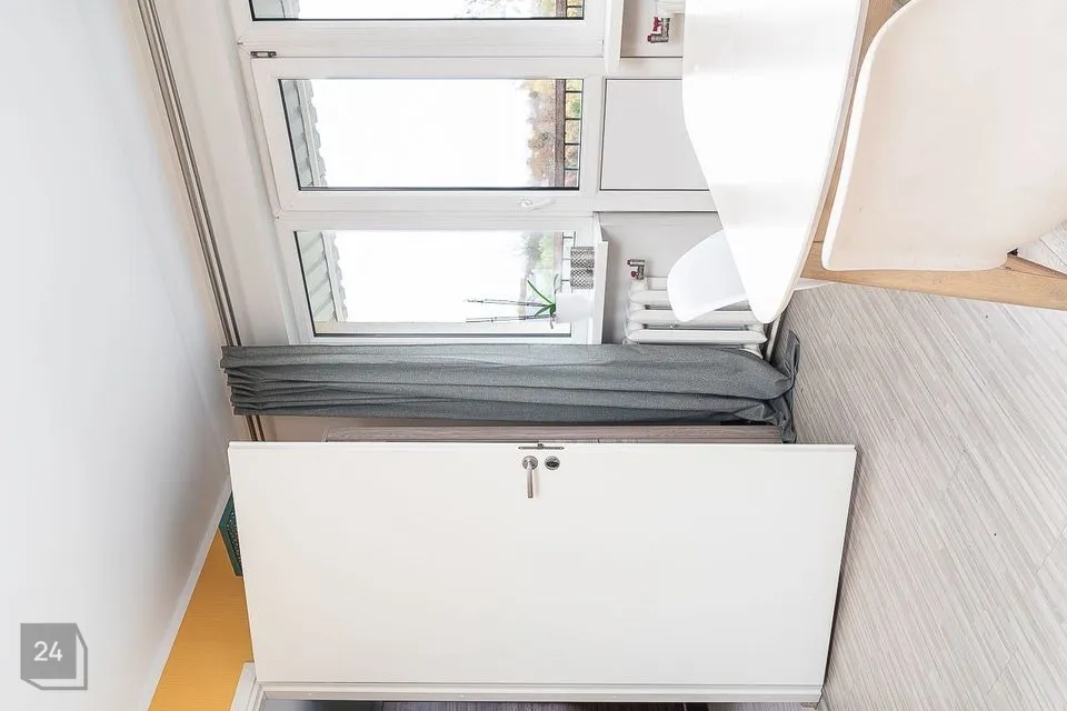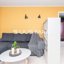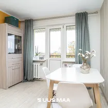 At Pae 9, a sunny two-room apartment on the fifth floor of a five-story building is for sale. Upon entering the apartment, there's a hallway with a spacious coat rack, with room for smaller furniture like a chest of drawers or a shoe cabinet. The living room layout allows for versatile use, with the sofa-TV corner being separate from the dining area. The bedroom is a good size, featuring a personal walk-in closet that's storage-room sized, where you can neatly tuck away all your belongings. The floors are light, and the kitchen is in good condition. The balcony is the complete pearl of this apartment - a beautiful maple tree grows beneath the balcony, so the views are private yet spacious. Sunsets over the sea beyond the horizon are worth enjoying. You have to see it with your own eyes!