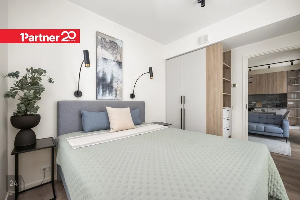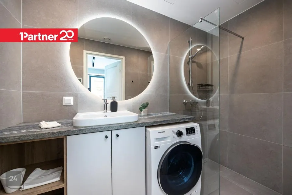 3-toaline korter, kus ruumi kasutus on maksimaalselt professionaalse sisekujundaja poolt planeeritud. Köök ja elutuba on avatud planeeringuga ning kaks magamistuba asuvad eraldiseisvatena. Korteri juurde kuulub kaks rõdu (üks pääsuga elutoast ning teine magamistoast).