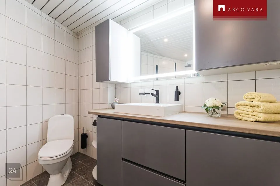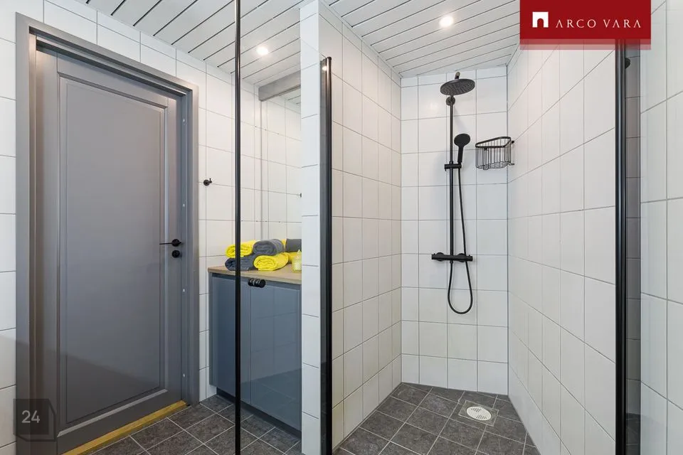 Põrandaid katab naturaalne parkett, vannitoas plaadid. Kvaliteetsed puidust vaheuksed, seinad värvitud.