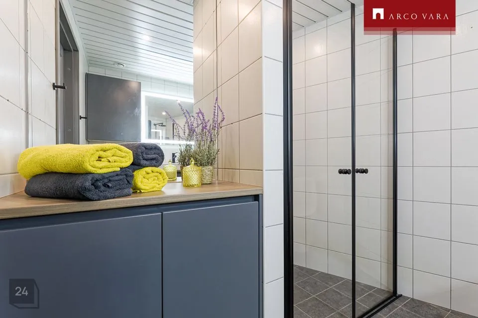 Korter koosneb avatud köögiga-elutoast, eraldi magamistoast, WC/duširuumist ning garderoobist ja esikust. Korter on avar, valgusküllane ja maast laeni ulatuvate akendega. Korteriomandi üldpind on 57,6m2, mis sisaldab panikaika (4,8m2) -1 korruselt ning kust pääseb mugavalt liftiga 5. korrusele..