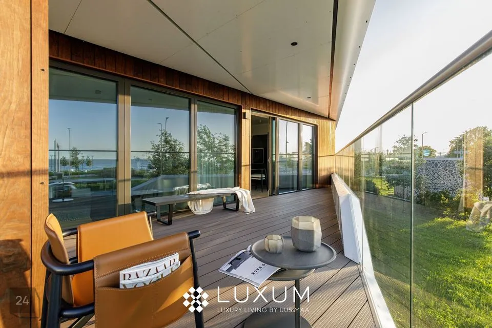 Baltikumi parima uusarendustiitliga pärjatud Kiikri Residentsides ootab uusi elanikke maitsekalt ja väga kvaliteetsete materjalidega sisustatud avar ja valgusküllane merevaatega 4-toaline korter.