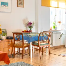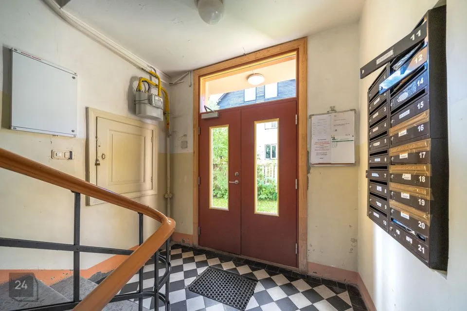 See kõrgete lagedega korter ootab sind hoone teisel korrusel – valgusküllane, avara hingamisega ja valmis kandma sinu lugu. Planeeringus on esik ning avar tuba, kus eluruum ja magamisala on ühendatud, kööginurk jääb avatuks ja käepäraseks. Lisaks on eraldi tualett ning pesuruum dušikabiiniga. Aknad avanevad kagu-, lõuna- ja edelasuunda, mistõttu on korter päikeseküllane kogu päeva vältel – valgus liigub siin koos ajaga. Kevadel tõmbab loodus ise akna ette kardina – kastanipuude lehed, mis liiguvad tuules ja teevad valgusega oma kokkuleppe.
