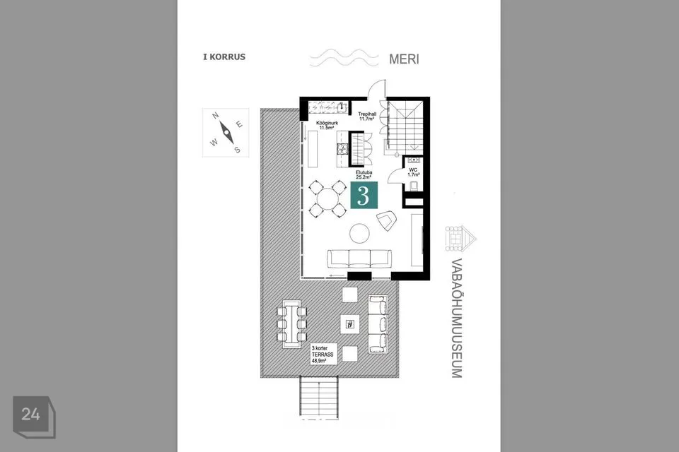 Müüa lõuna- ja õhtupäikese suunal avaneva terrassi ning hoovialaga 4-toaline korter eksklusiivses Merirahu Villade elamukvartalis. Antud korterile kuulub isiklik 48,9 m² suurune terrass ning hooviala pindalaga 309 m².