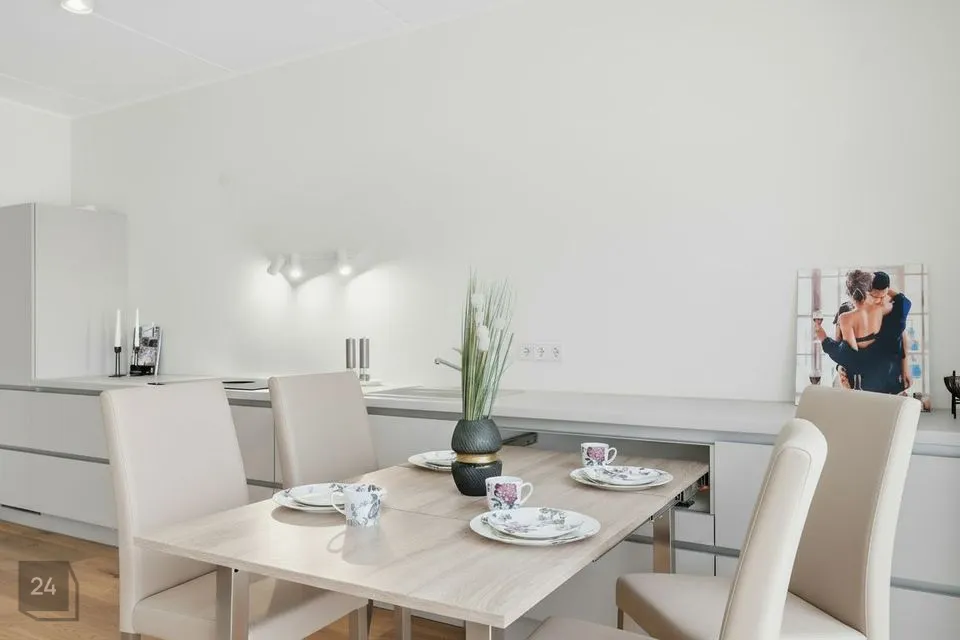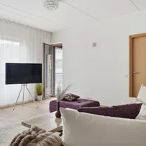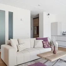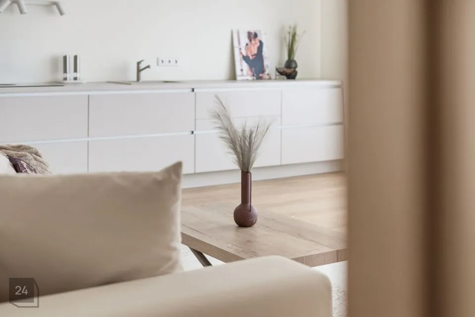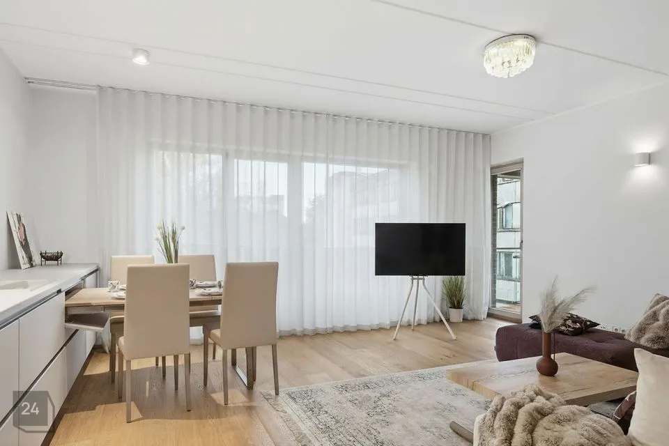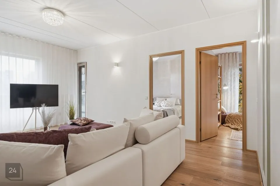Korter on valgusküllane ja maitsekalt viimistletud, heledates toonides interjöör loob avaruse ja rahuliku meeleolu. Põrandaid katab naturaalne puitparkett, mis lisab hubasust ja soojust.