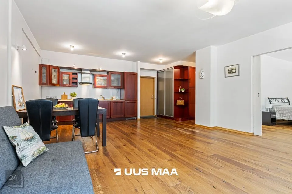 Ruumide koosseisu kuulub riidekapiga esik, avar avatud köögiga elutuba, magamistuba ning suur vannituba.