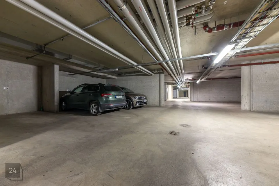Korterile kuulub ja sisaldub müügihinnas üks parkimiskoht soojas maa-aluses garaažis ning panipaik mugavaks asjade hoiustamiseks. Külaliste tarbeks on parkimiskohad tõkkepuuga suletavas väliparklas või hoone ümbruses.