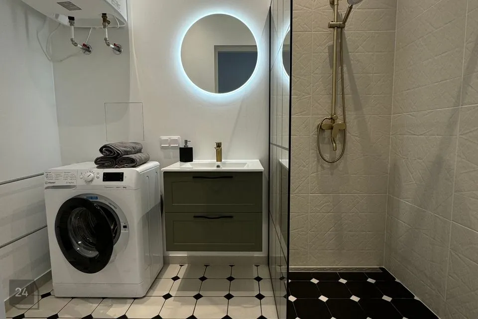 Köögis on olemas kõik vajalik – kaasaegne köögimööbel, suur külmkapp ja pesumasin.