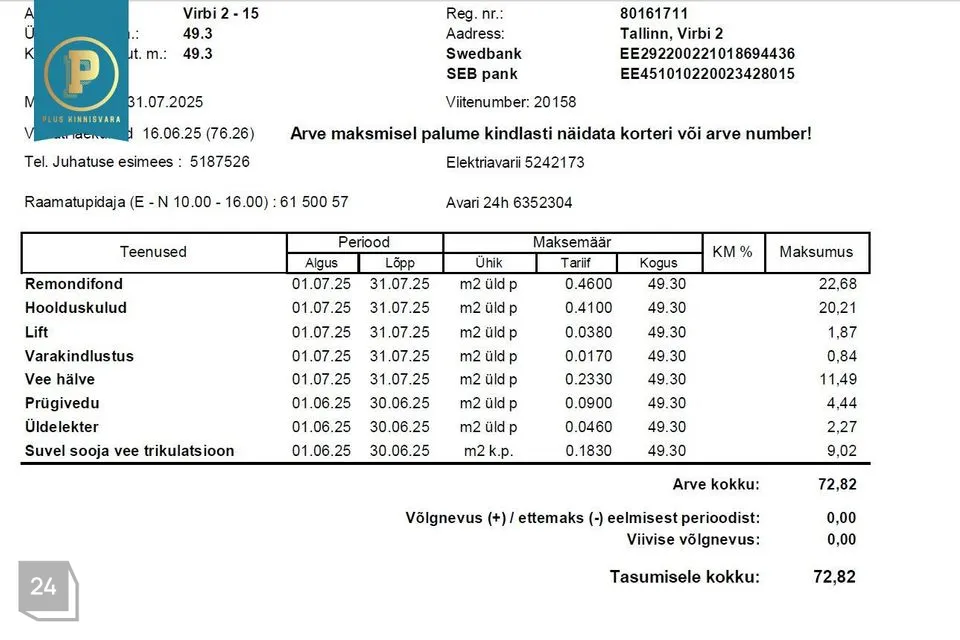 Üldpind 49,3m2.
