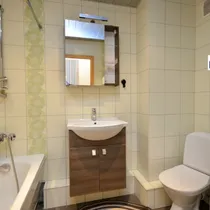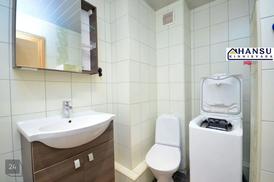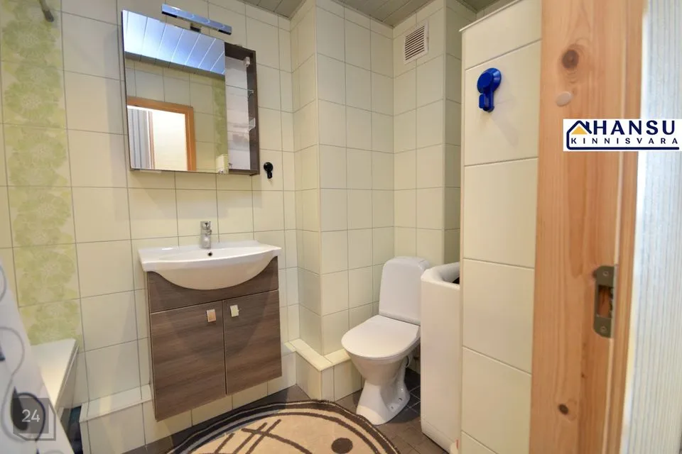 Sanitaarruum plaaditud, on olemas bedee. Põrandal osaliselt laminaatparkett, magamistubades on heas seisukorras naturaalne parkett.