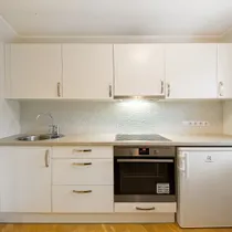 Köögikapid on uuendatud, köögi tagasein on plaaditud. Köögis on integreeritav keraamiline pliit koos ahjuga.