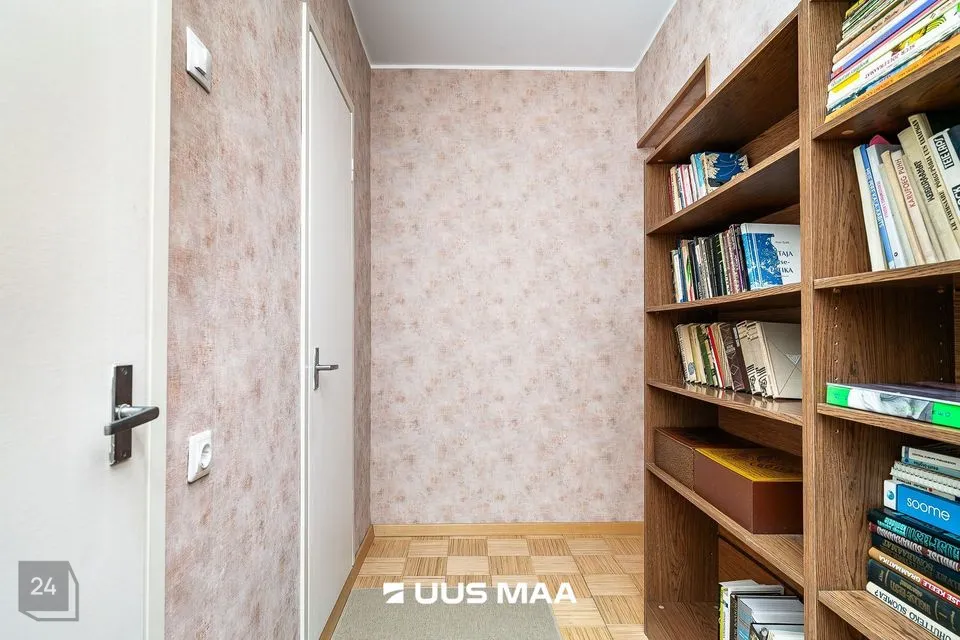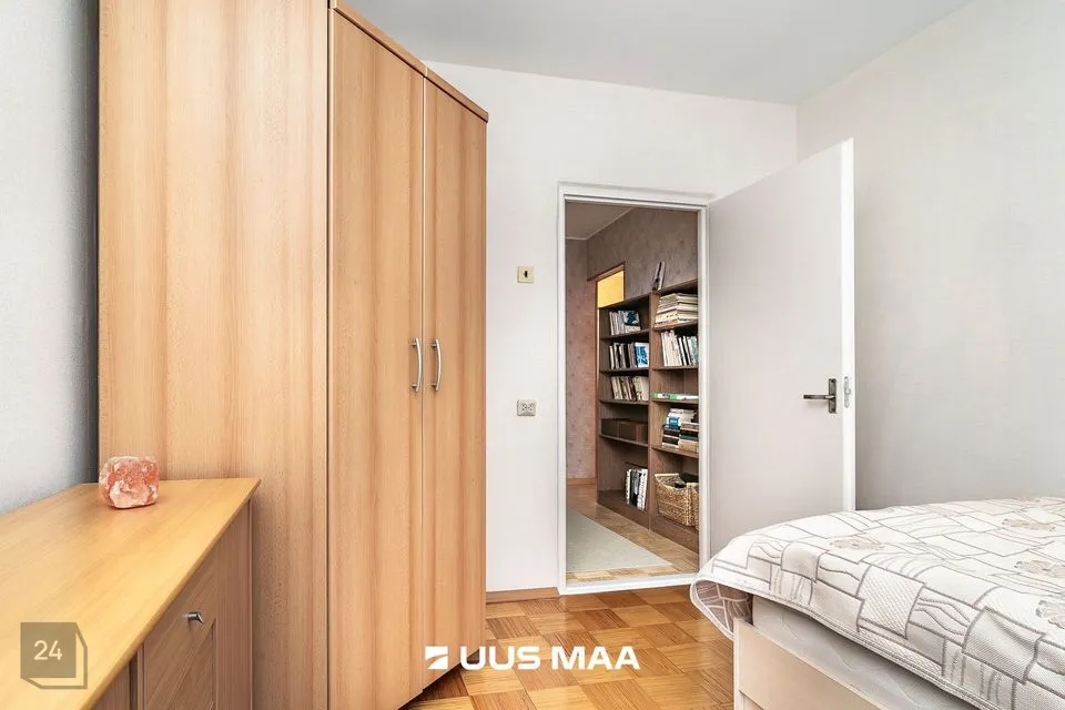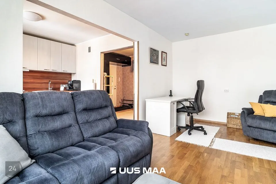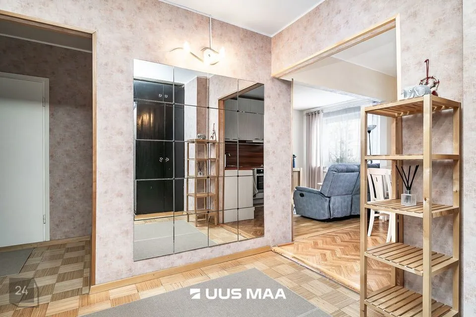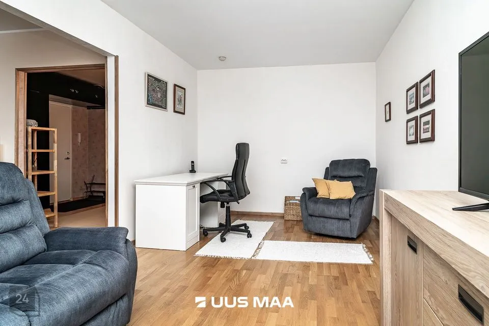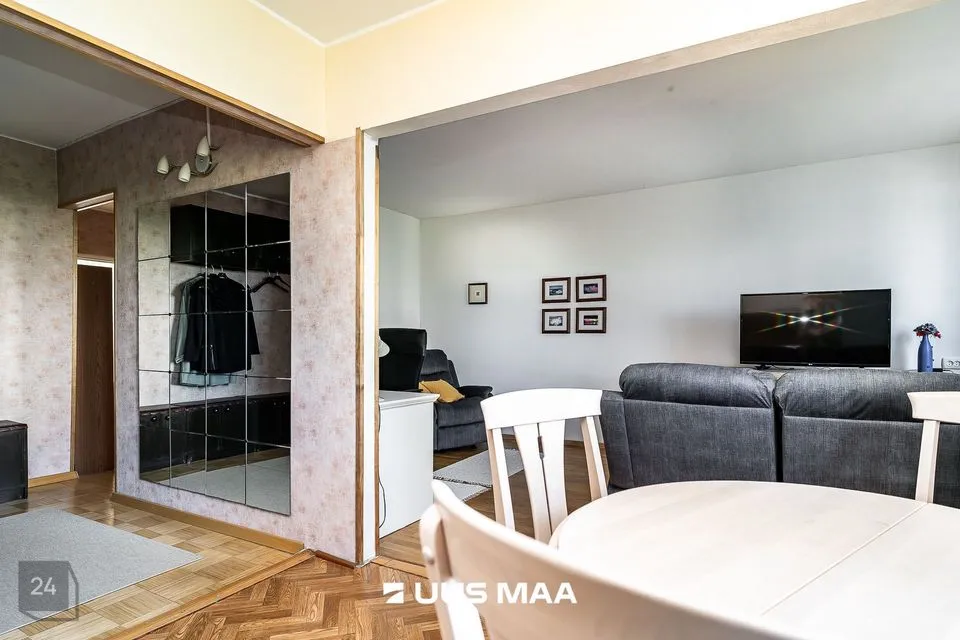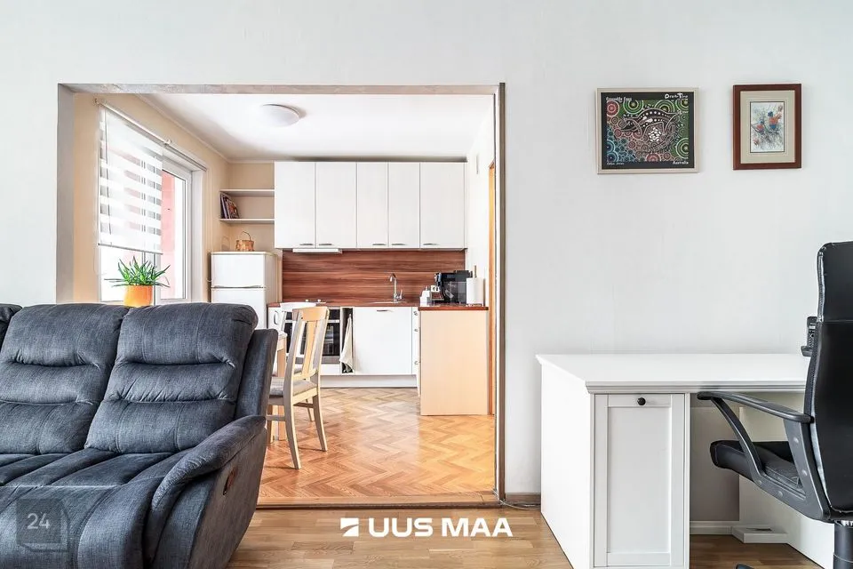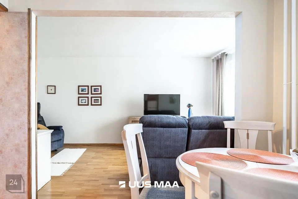 Müüdav korter asub viiekordse maja kolmandal korrusel. Korteris on avatud planeeringuga köök, elutuba, magamistuba, koridor, eraldi tualettruum ja vannituba ning tüüppaneelelamule I-121 omane suur esik. Võrreldes esialgse projektiga on korteri planeeringut muudetud selliselt, et suletud esikust elutuppa viinud ukseava ja freesitud uus ava elutoa ja köögi vahelisse seina, muutes ruumiplaneeringu funktsionaalsemaks, avatumaks ja valgusküllasemaks. Rekonstrueerimistööd on seadustatud (olemas kasutusteatis ja vastav märge EHR-is). Korteri siseviimistlus rahulikes toonides, sisustus minimalistlik. Korteri müügihinnas sisaldub valdav osa piltidelt nähtavast sisustusest.