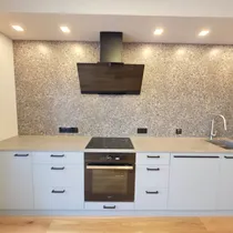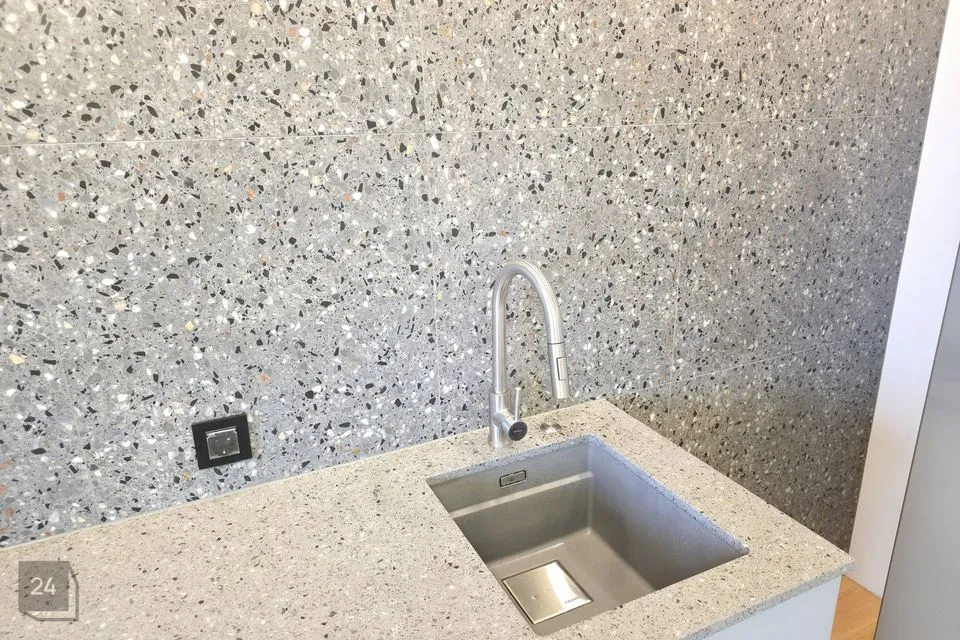 Köögis uus tehnika ning kivist töötasapind. Plaatide vuugid ca 1 mm.