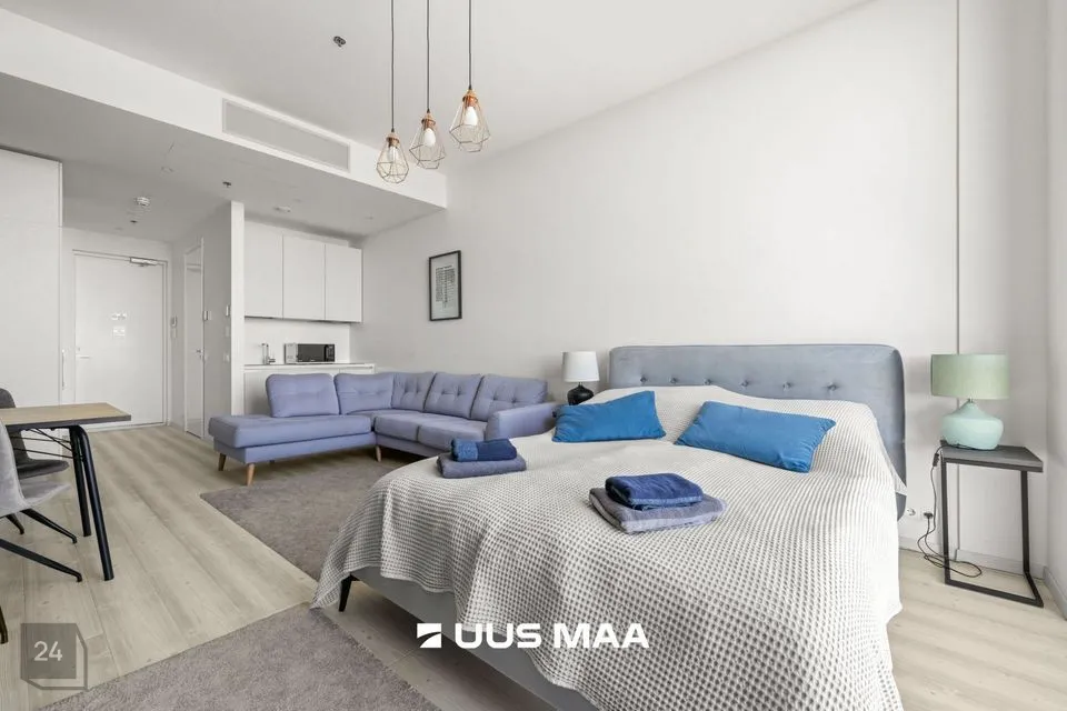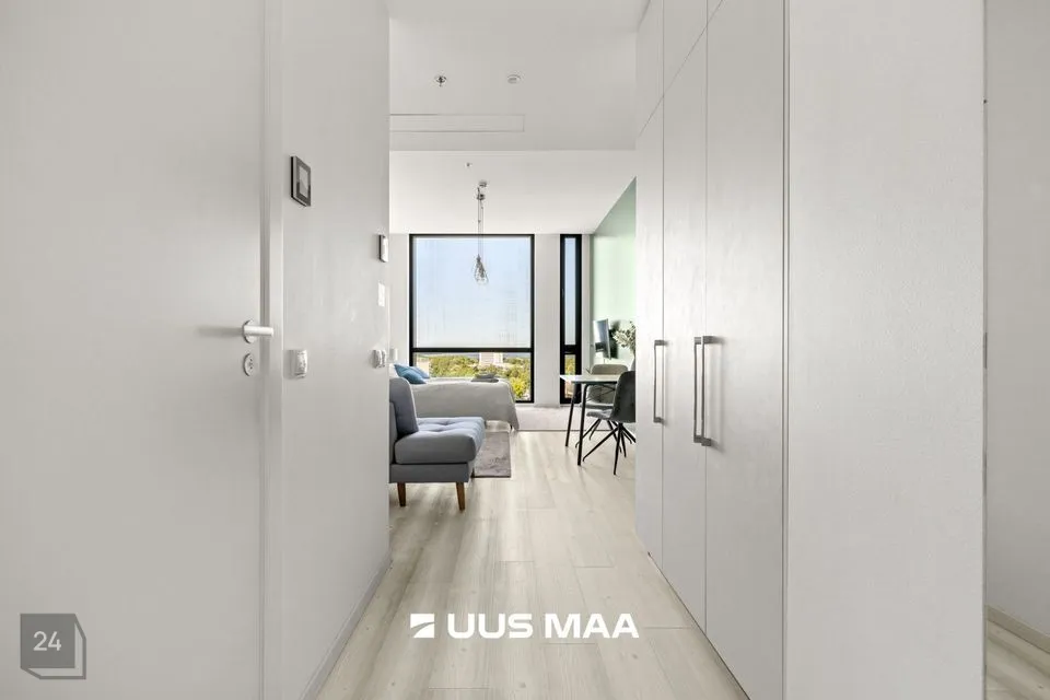14. kordse maja 11. korrusel asuval korteril on maast laeni aknad, kust avanevad lummavad vaated linnale! See korter on “paberite järgi” küll 1-toaline, kuid tänu suurepärasele planeeringule on korter sisustatud justkui 2-toaline korter. Korteris on mahuka gaderoobikapiga esik, avatud köögiga elutuba ning eraldi veel ka magamistoa osa. WC ja vannituba on koos.