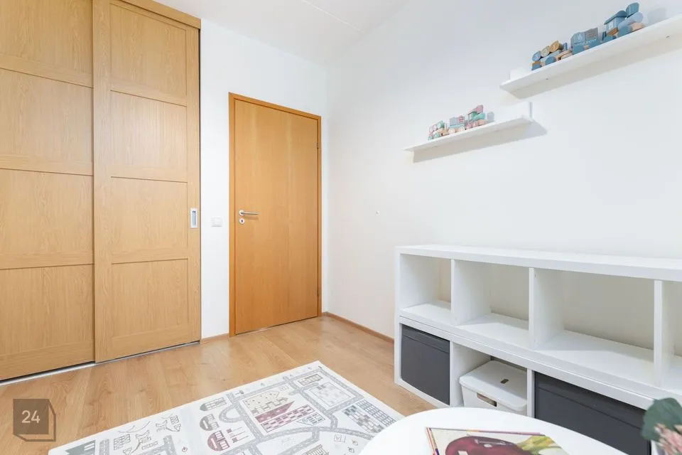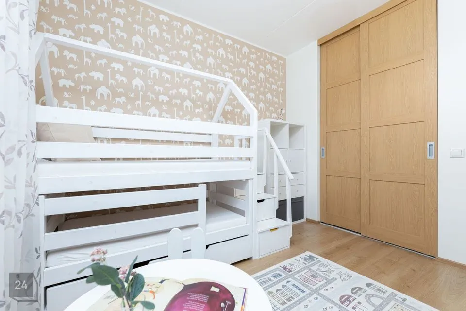 Esikus ja lastetoas on mahukad sisseehitatud liugustega garderoobikapid.