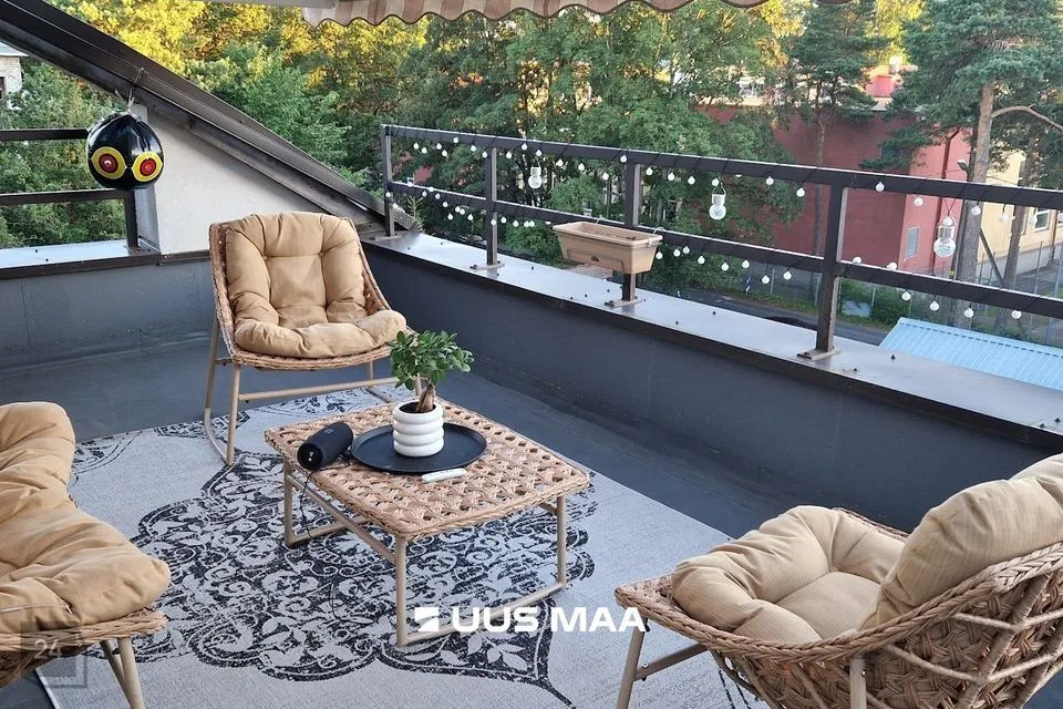 Trepi hallist pääseb päikesepoolsele 18,8 m² terrassile, kus on olemas puldist juhitav markiis – ideaalne koht hommikukohvi või suviste õhtute nautimiseks.