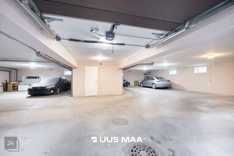 Olemas on ka ruumikas (ca 30 m²) parkimiskoht maja all garaažis, kus on piisavalt ruumi ka rataste ja rehvide hoiustamiseks.