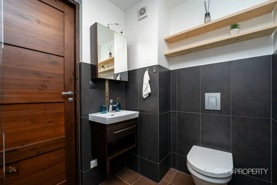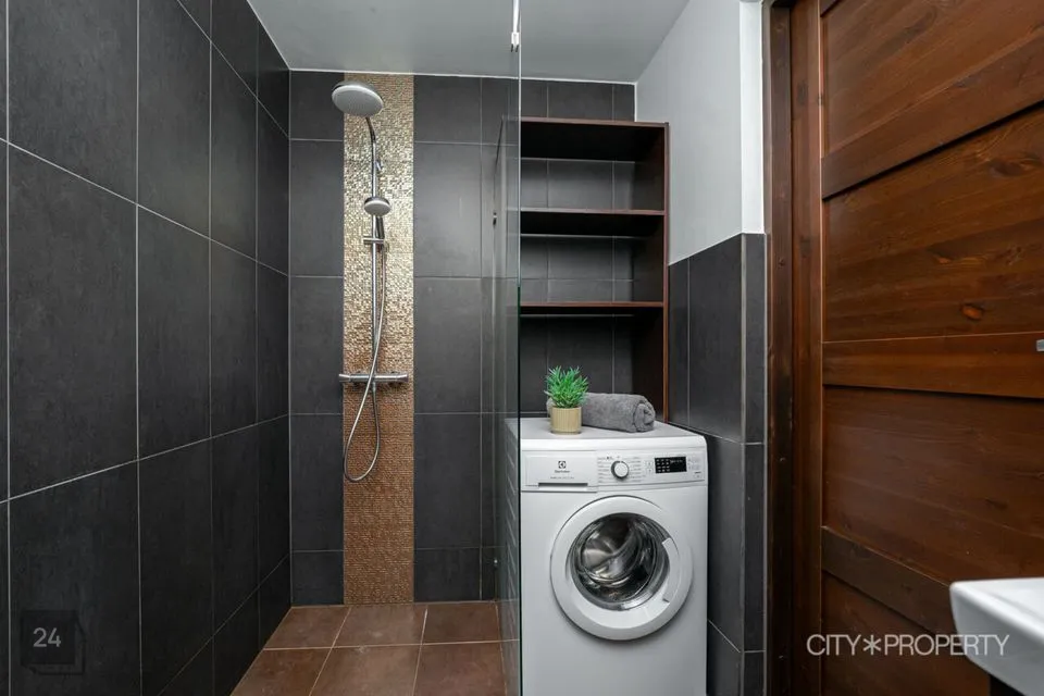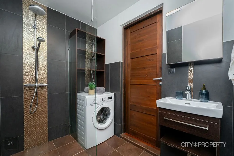 Dušširuum ja WC asuvad koos ning olemas elektripõrandaküte. Vannituba on plaaditud ja olemas pesumasin.