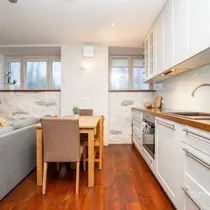 Korteri koosseisu kuuluvad avatud köök/elutuba, magamistuba, koridor, dušš koos wc-ga. Olemas köögimööbel koos vajaliku tehnikaga (keraamiline elektripliit, elektriahi, kubu, külmkapp).