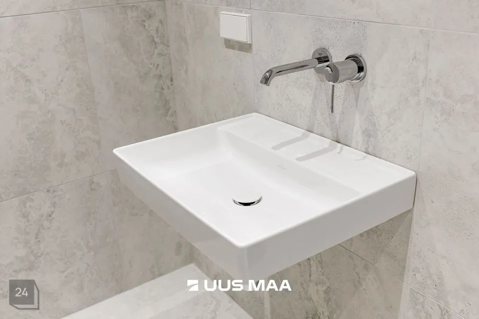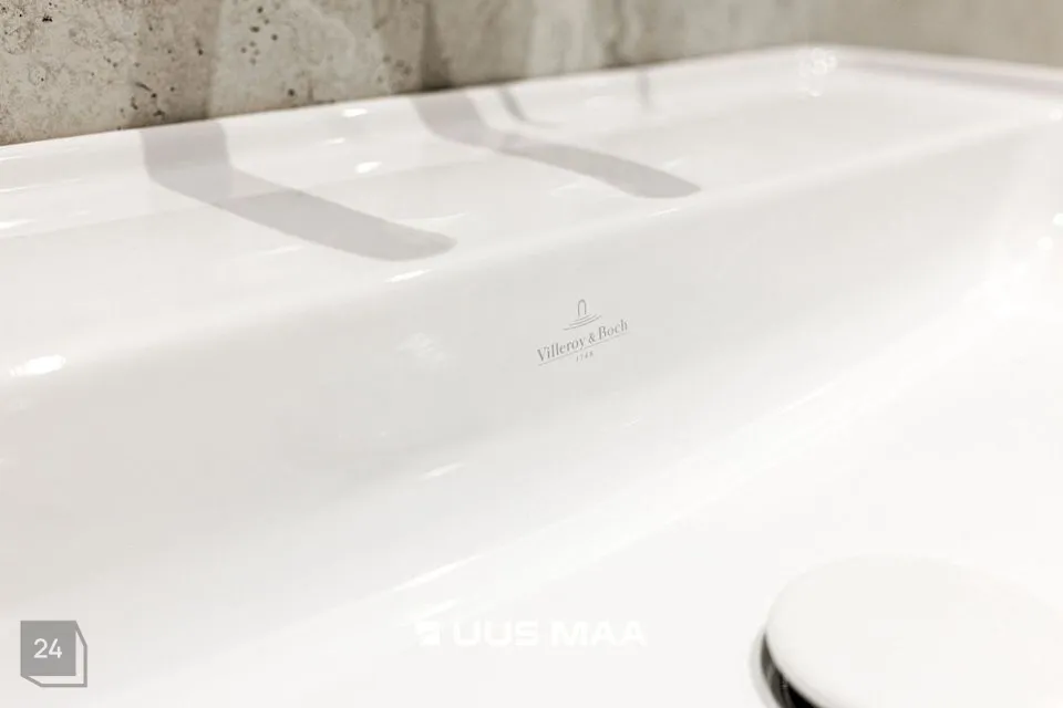 Kõrge standard jätkub vannitoas, kuhu on paigaldatud stiilse disainiga Villeroy & Bochi sankeraamika ning kvaliteedi poolest hinnatud Grohe sanitaartehnika.