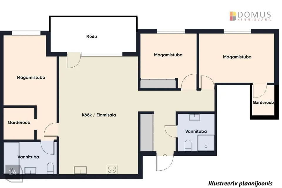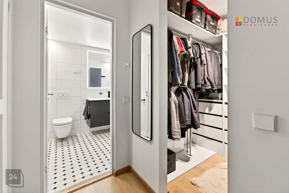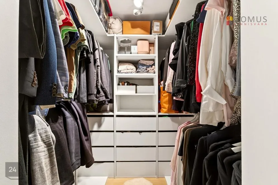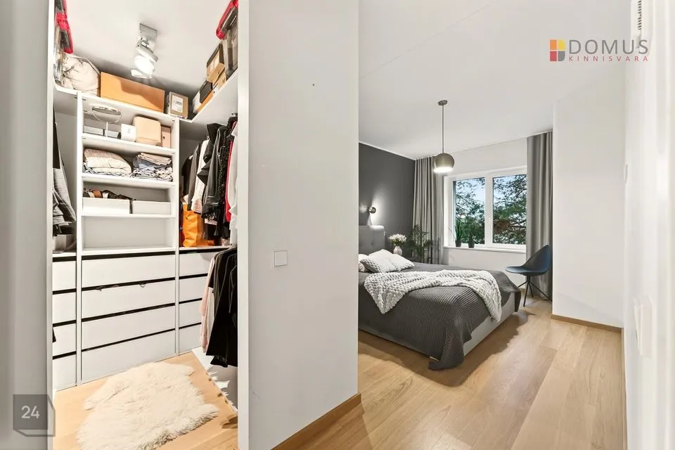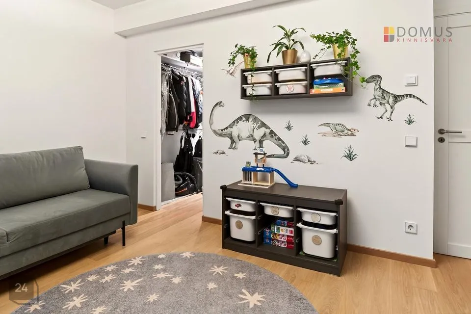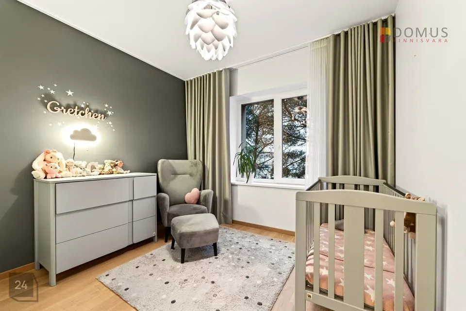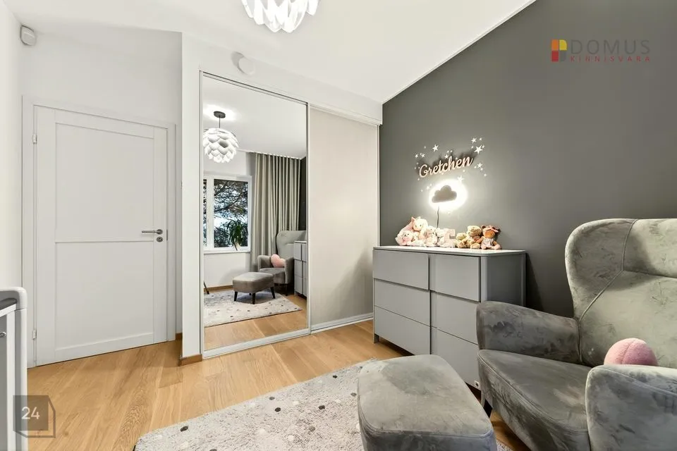 Magamistoad asuvad korteri eri otstes: master-bedroom koos walk-in garderoobi ja oma vannitoaga ühel pool (kokku 24,5 m²) ja kaks lastetuba teisel pool elutuba. Ühel lastetoast on samuti eraldi ukse taga walk-in garderoob, teises sisseehitatud garderoobkapp (vt. fotodele lisatud planeeringujoonist).