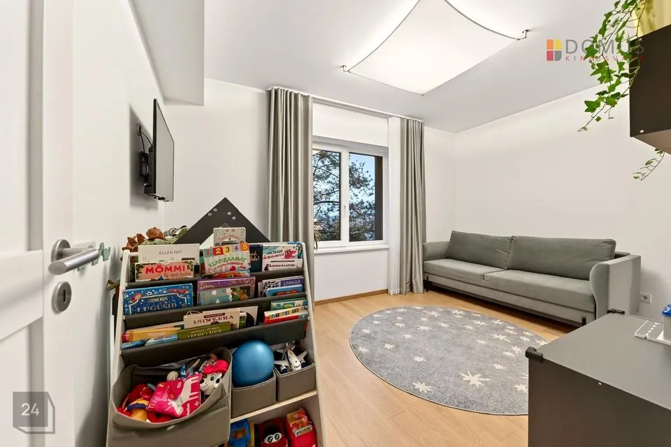 4-toalises korteris on suure rõduga (10,9 m²) elutuba ja tõeliselt avar köök (kokku 32,5 m²). Köögimööbel on korterisse 2022.aastal paigaldatud kvaliteetne Schmidt’i eritellimusmööbel koos tippklassi tehnikaga Boschilt. Köök peidab nutikaid lahendusi ja on mugav suurele perele kasutamiseks.