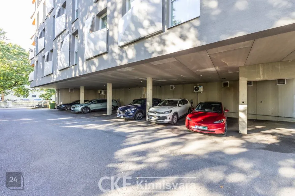Korteri juurde kuulub kaks parkimiskohta katuse all koos elektriauto laadijaga ning avar panipaik (3,9 m²) 0 korrusel.