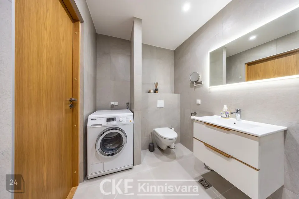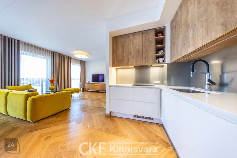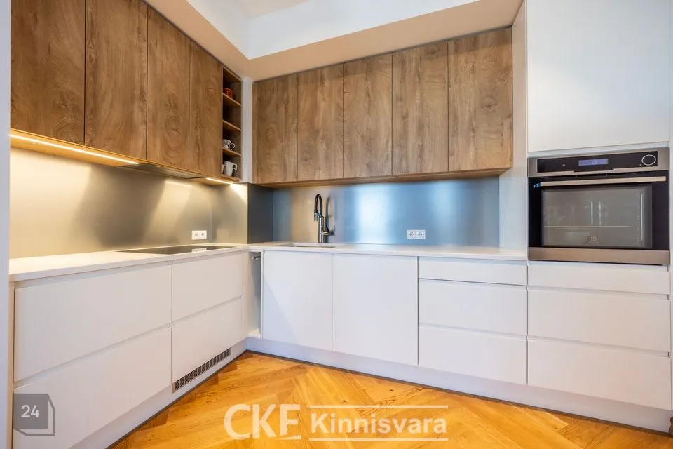 Köögis on kvaliteetne mööbel ja integreeritud tehnika: nõudepesumasin, induktsioonpliit, aurufunktsiooniga pürolüüsahi ja kubu.