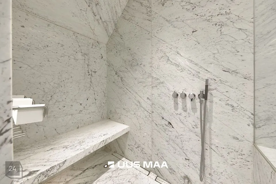 Luksuslik ning samas hubane kodu on viimistletud kvaliteetsete materjalidega. Põrandat katab tammelaud ja vannitoas on suursugused marmorplaadid.