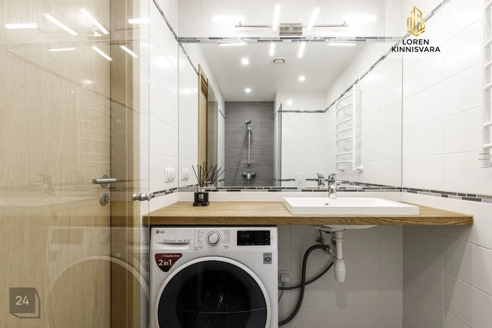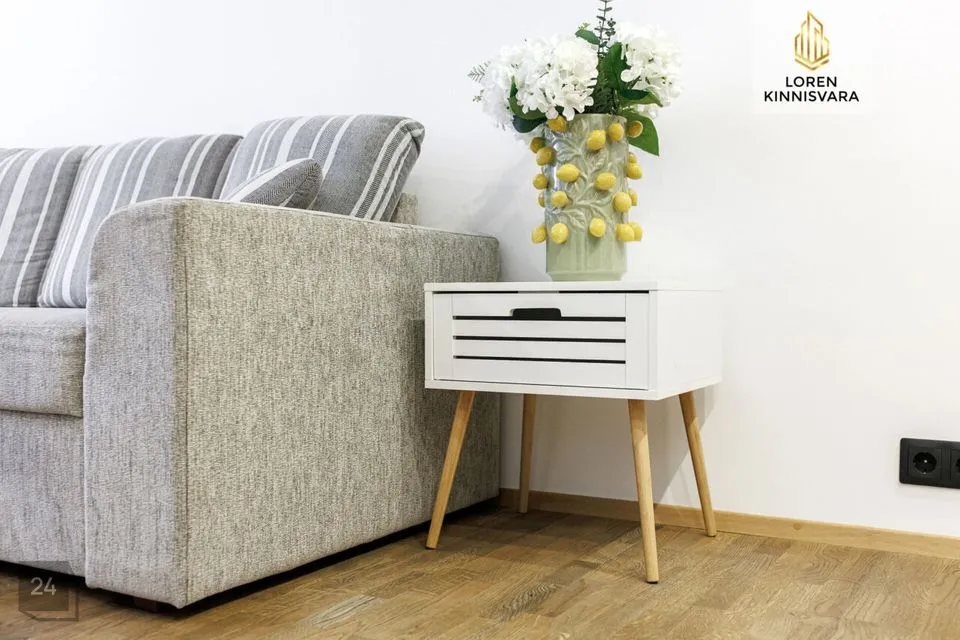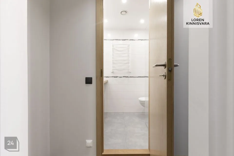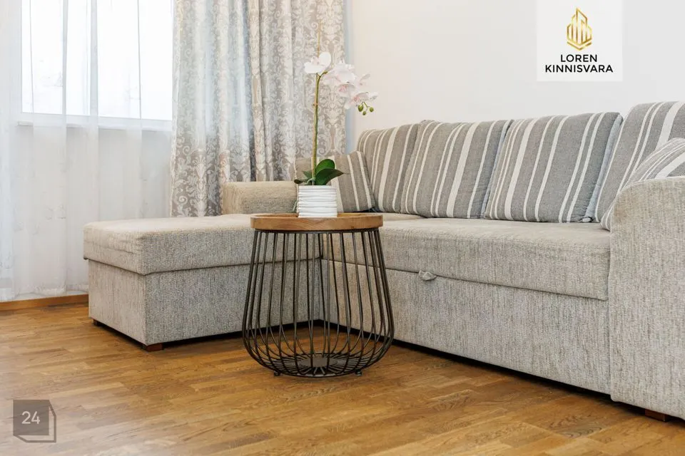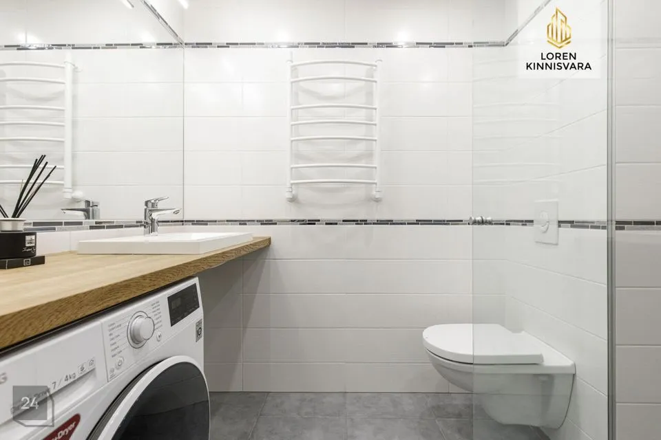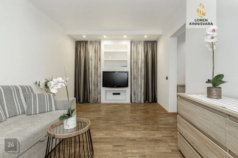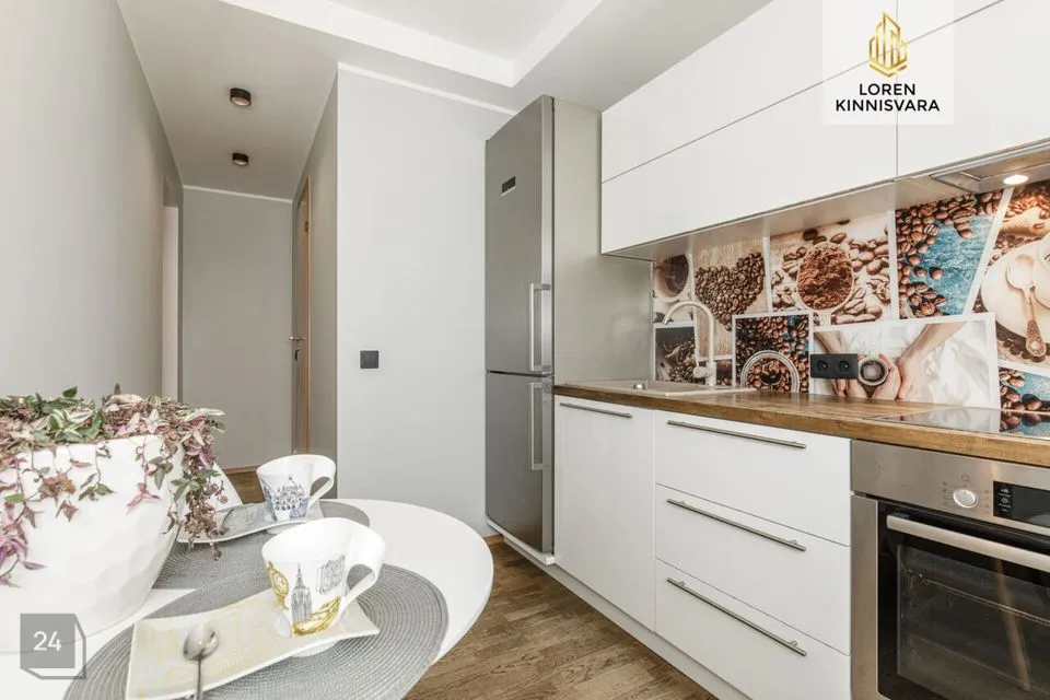 Müüa kaunis 2-toaline korter, mis asub 9-korruselise maja 7 korrusel. Korteris on esik, elutuba, magamistuba, köök, vannituba ja wc. Kõik toad asetsevad eraldi, mis teeb elamise mugavaks. Korterisse sisenedes jõuate esikusse, kuhu saab jätta jalatsid ja üleriided. Järgnevalt asub valgusküllane elutuba, magamistuba ja köök. Korteri siseviimistlus on heledates toonides ja sisustatud minimalistlikult. Elutoas on diivan, TV ja suur garderoobikapp. Elutoast pääseb klaasitud rõdule, kust avaneb imeline vaade linnale. Elutoas ja magamistoas on kvaliteetne tammeparkett, mis loob sooja ja kutsuva atmosfääri. Magamistoas on suur voodi ja kapp. Eraldi köök koos köögimööbli ja Boschi tehnikaga (külmkapp, elektripliit, ahi). Vannituba/wc on plaaditud Villeroy & Boch keraamikaga ning paigaldatud on Grohe sanitaartehnika. Mugavust lisab elektriline põrandaküte vannitoas. Aknad asetsevad hoovi poole, tänu millele ei ole kuulda tänavamüra. Müügihind sisaldab kogu mööblit ja tehnikat, mis teeb uue kodu ostmise eriti mugavaks.