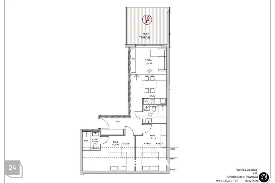 • Total area 66,3 m², 15,2 m² roof terrace