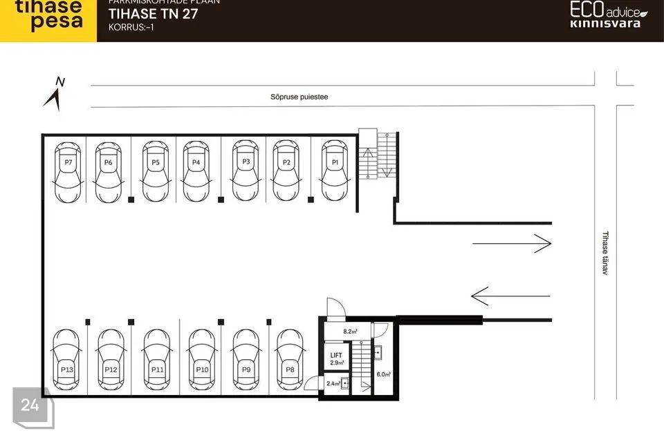 NB-1 Külaliskorteri hinnale lisandub parkimiskoha maksumus - hoovis 7000 eur ja maja-aluses parklas 10 000 eur.