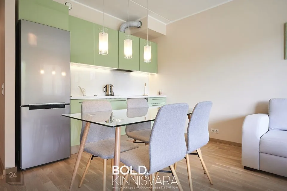 Korter on sisustatud kvaliteetse ja funktsionaalse mööbli ning kodutehnikaga mis jääb uuele omanikule kasutusse. Magamistoas on mugav lai voodi ja 4.8 m2 garderoobiruum, esikus mahukas integreeritud garderoobikapp. Köögis on olemas vajalik kodutehnika ("Samsung" külmkapp, "Bosch" nõudepesumasin ning "Elektrolux" induktsioon pliit, ahi ja kubu). Korteri seisukord on ideaalne, tunne, nagu keegi pole elanud :)