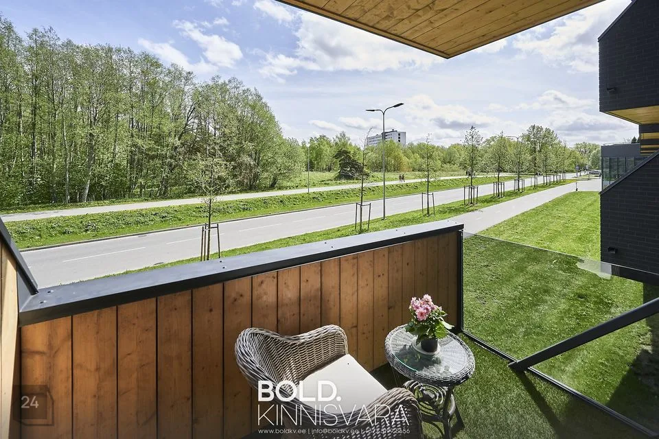 Korteri koosseisu kuuluvad elutuba avatud köögiga, magamistuba, garderoobituba / panipaik, vannituba ja esik. Hubane 55.3 m2 kõrgete laedega 2-toaline stiilse ja kaasaegse disainiga korter sobib ideaalselt inimesele, kes hindab mugavus, loodus ja linna pakutavad mugavused. Suured aknad on suunatud hommiku-päeva päikese poole, aknast vaade on metsa peale. Elutoast pääseb 4,5 m2 avatud rõdule.