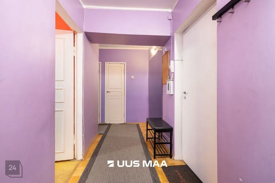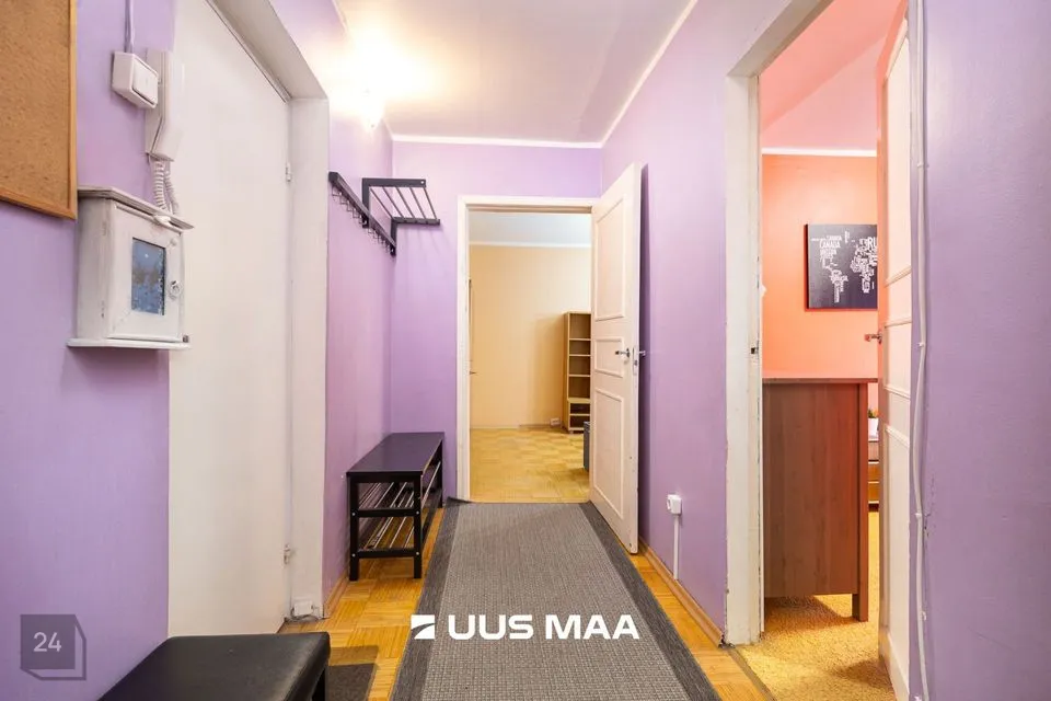 Korterisse sisenedes jääb vasakule suur elutuba kus saab mõnusalt aega veeta. Otse jääb magamistuba ning paremale jääb suur panipaik mille kõrval asub eraldi wc ja vannituba. Peale vannituba tuleb köök kus on kõik söögitegemiseks vajalik olemas. Köögimööbel koos tehnikaga on paigutatud ca 5 aastat tagasi. Tänu pakettakendele on korteris vaatamata südalinna asukohale vaikne.