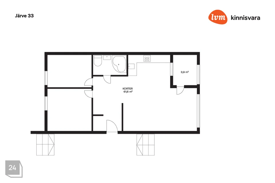Korteril on majas eraldi privaatne sissepääs. Väga avar esikuosa garderoobiga. Läbi maja planeering. Elutuba, kinnise soojustatud rõduga ja avatud köögi osaga jäävad maja esise suunas ning eraldiasetsevad magamistoad vaikse maja taguse suunas. Ruumikas peamine magamistuba ja eraldi väiksem magamistuba kus on väga hästi läbimõeldud sisuga, suur garderoob. Vannituba vanni ja wc-ga on koos. Korter on heas seisukorras ja elamiseks valmis.
