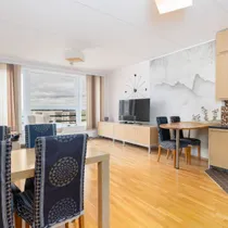 Korter asub seitsmekorruselise maja kõige ülemisel, seitsmendal korrusel ning pakub avarat ja hästi läbi mõeldud planeeringut. Aknetest avanevad kaunid ja avarad vaated. Korteri koosseisu kuuluvad valgusküllane elutuba koos avatud köögiga, kaks hubast magamistuba, esik ning vannituba koos tualetiga. Esikus ja magamistoas on sisseehitatud garderoobikapid.