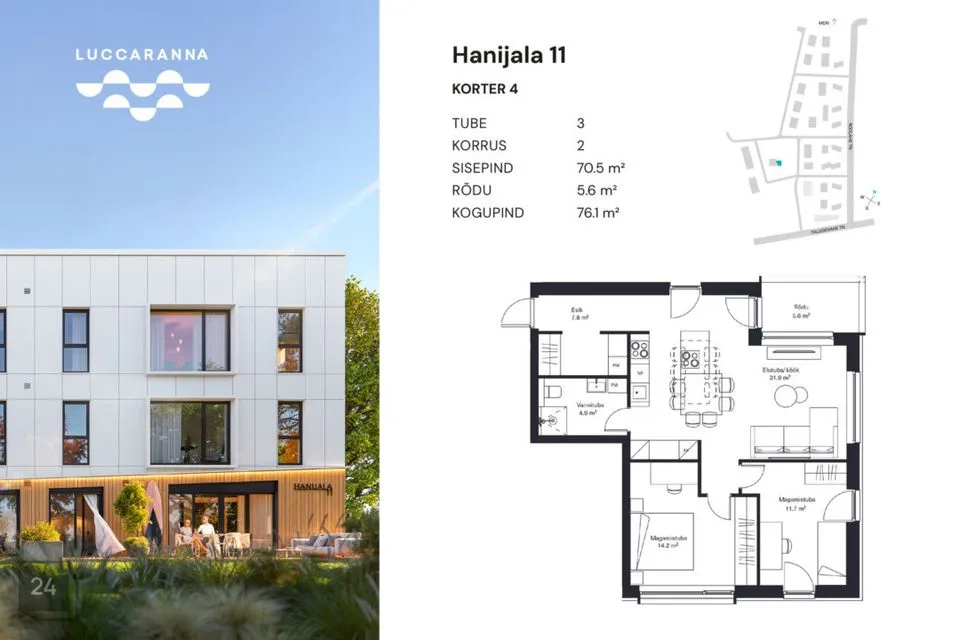 Luccaranna teeb eriliseks asukoht mere ääres, looduses, kuid linnale lähedal. Avarad rõdude ja terrassidega kodud, majadevahelised autovabad puhkealad, spordilinnak ja mänguväljakud. TULE VAATAMA!