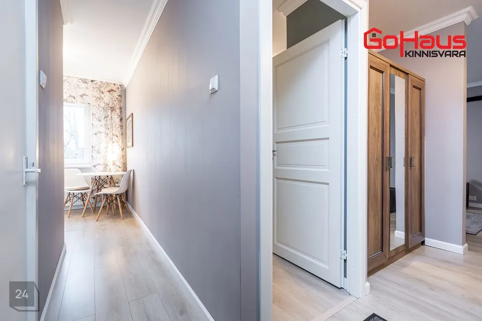 Korter on sissekolimiseks valmis – siseviimistlus on neutraalsetes toonides, põrandaid katab heas seisukorras parkett ning eluruumid on puhtad ja hooldatud.