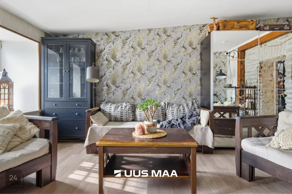 Korter on kujundatud neutraalsetes ja rahulikes toonides. Kohati on näha paekiviseinu, mis toovad ruumi ajaloolist karismaatilisust ja sooja atmosfääri.