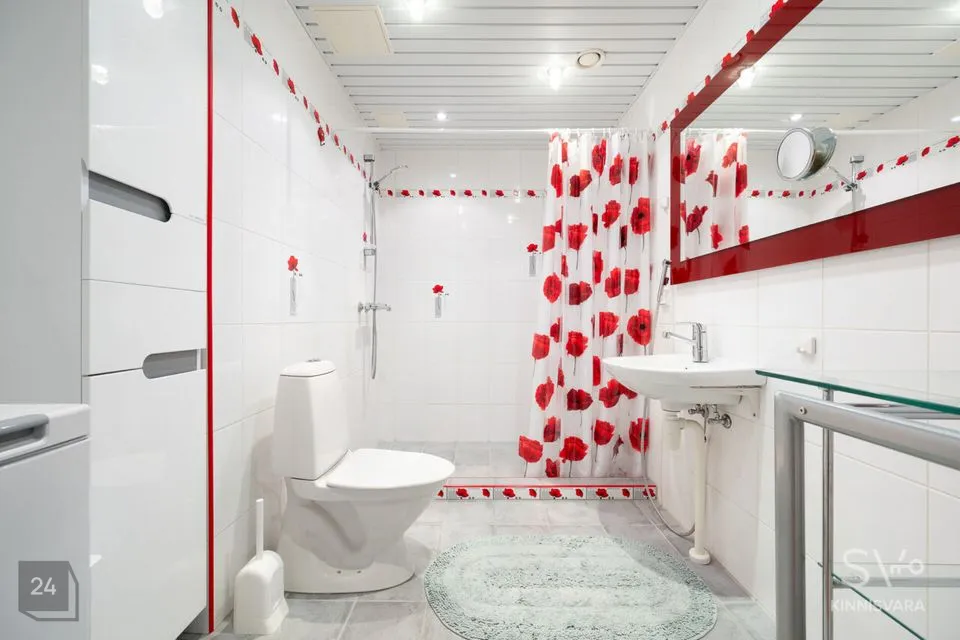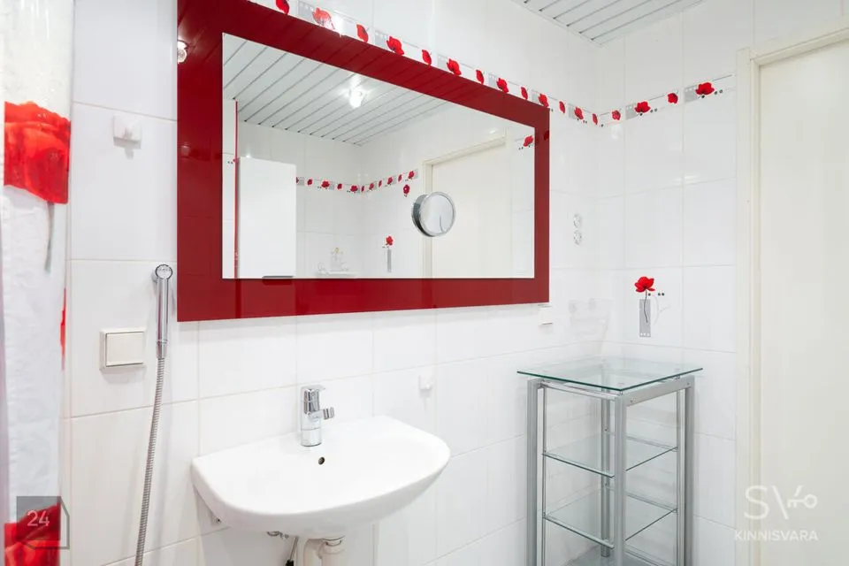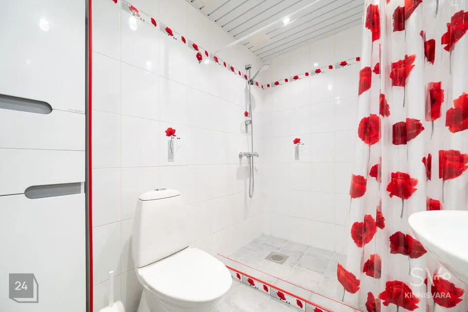 Vannituba on ruumikas ja varustatud avara dušinurgaga.