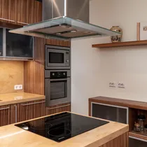Köök on sisustatud kvaliteetse tehnikaga: külmik, nõudepesumasin, ahi, pliit ja mikrolaineahi – kõik Junkobe kaubamärgilt.