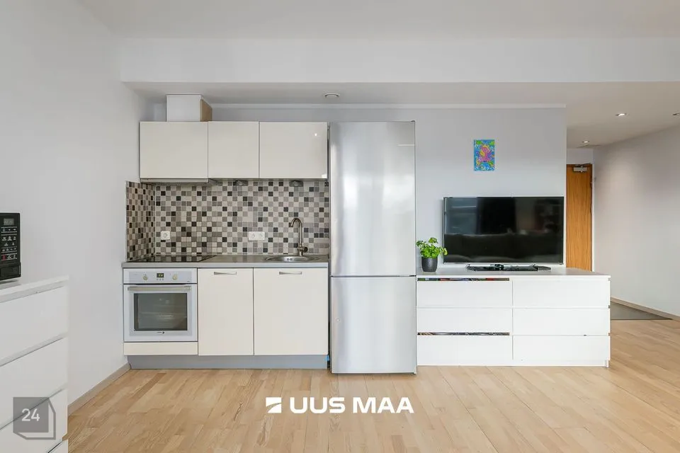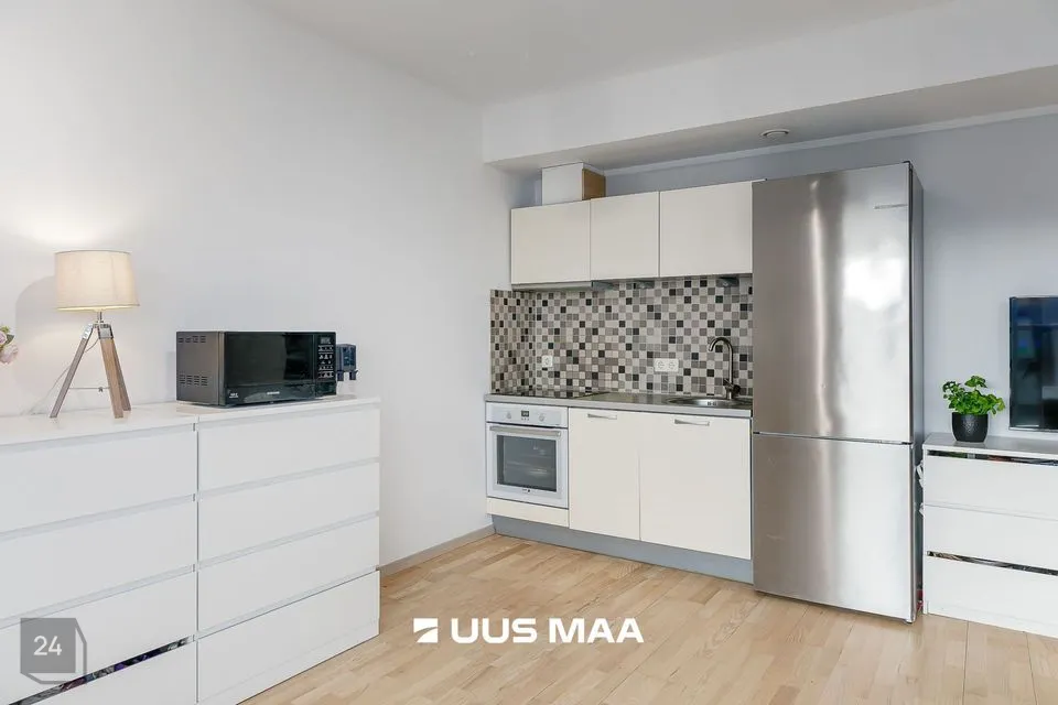 Ruumide koosseisu kuuluvad esik, avar elutuba koos avatud köögiga, magamistuba ning ruumikas duširuum. Aknad avanevad Liivalaia tänavale.