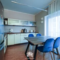 Köögimööbel ja -tehnika on kvaliteetne ja hästi hoitud – olemas on külmik, elektripliit, ahi, nõudepesumasin ja õhupuhasti.